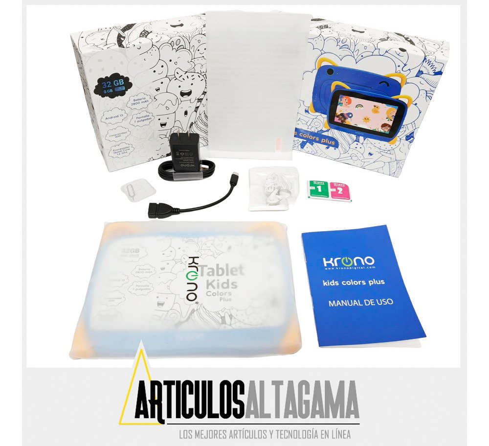 Con su pantalla de alta resolución, tus pequeños podrán disfrutar de sus vídeos y juegos favoritos con total comodidad y claridad. Equipado con 3GB de RAM + 3GB de RAM en la nube, ofrece un rendimiento rápido y fluido para navegar, ver contenidos o jugar sin interrupciones. Además, al contar con la tienda PlayStore preinstalada, podrás descargar fácilmente aplicaciones educativas y de entretenimiento que mantendrán a los más pequeños aprendiendo y divirtiéndose. ¡La Tablet Krono Kids es el regalo perfecto para que los niños exploren el mundo digital de manera segura y divertida!
