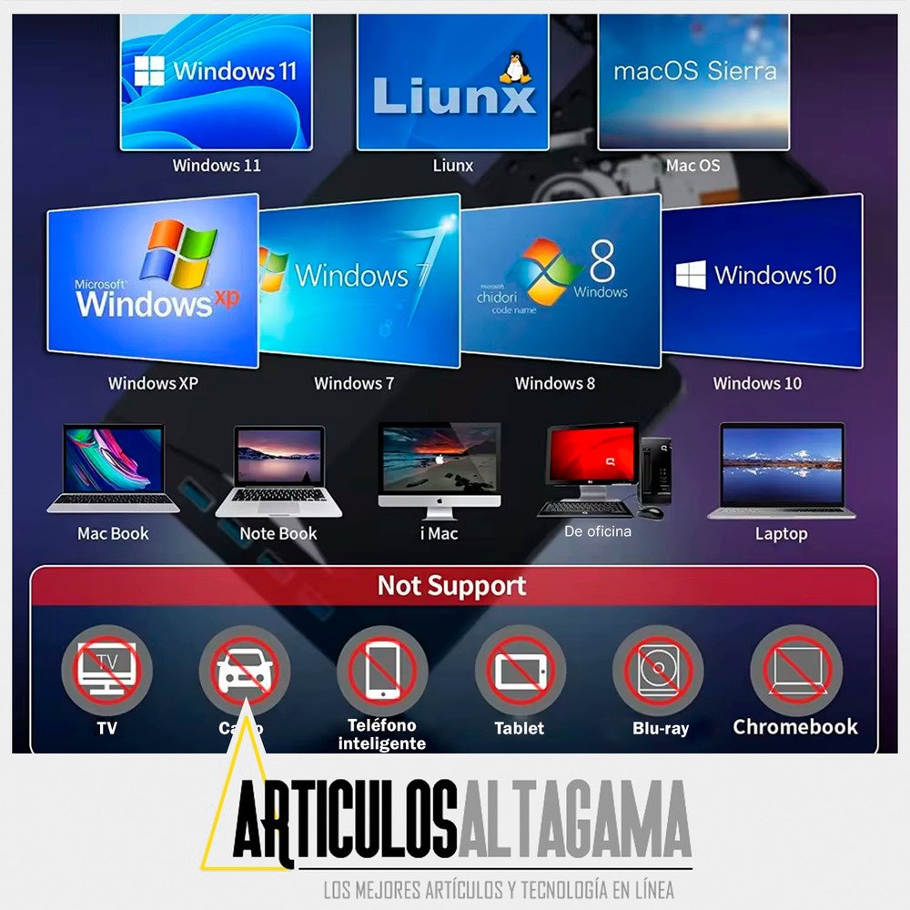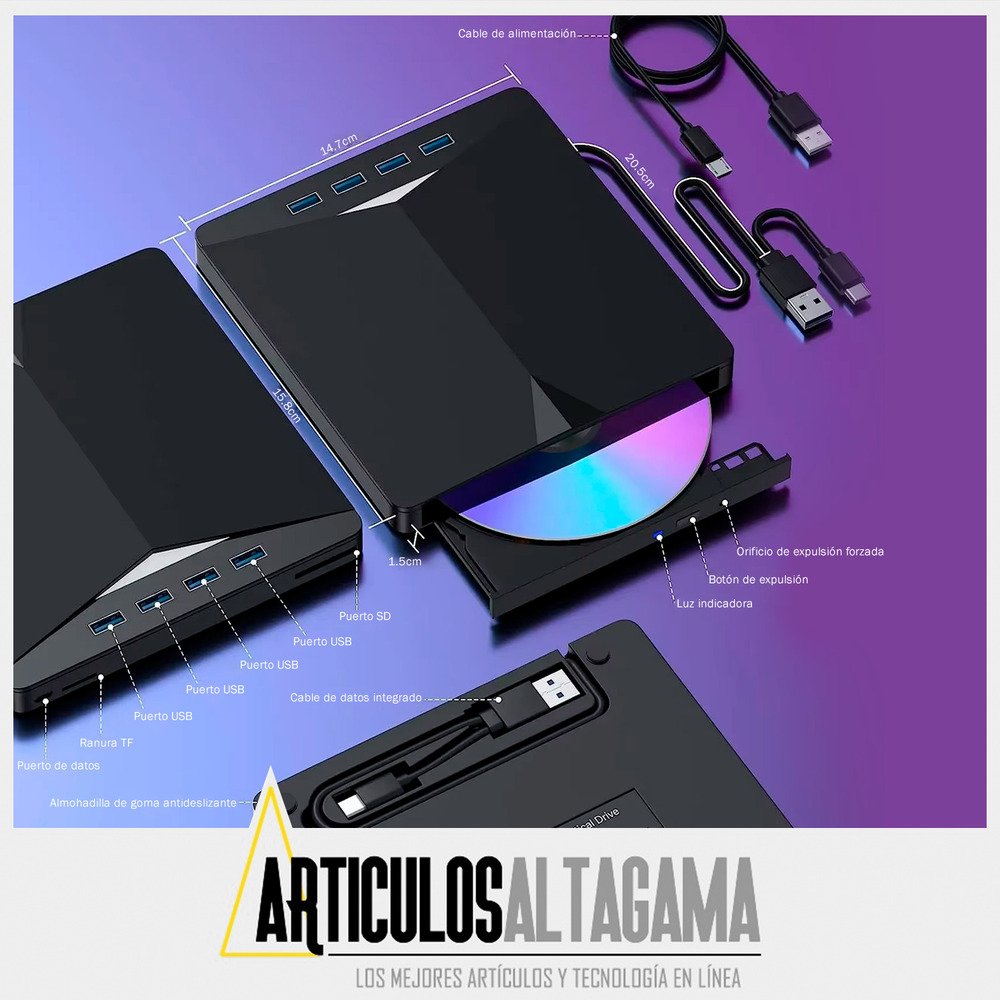 Descubre la comodidad y velocidad de la Unidad Óptica Externa 7 en 1 USB 3.0 Tipo C, la solución perfecta para tus necesidades de almacenamiento y reproducción. Con su diseño compacto y elegante, esta grabadora de CD/DVD RW de alta velocidad es compatible con Windows 11/10 y ofrece un rendimiento excepcional para grabar y reproducir tus archivos, videos, música y más. Su conectividad USB 3.0 y Tipo C asegura una transferencia de datos ultrarrápida, mientras que la bandeja de fácil acceso garantiza una experiencia sin interrupciones.