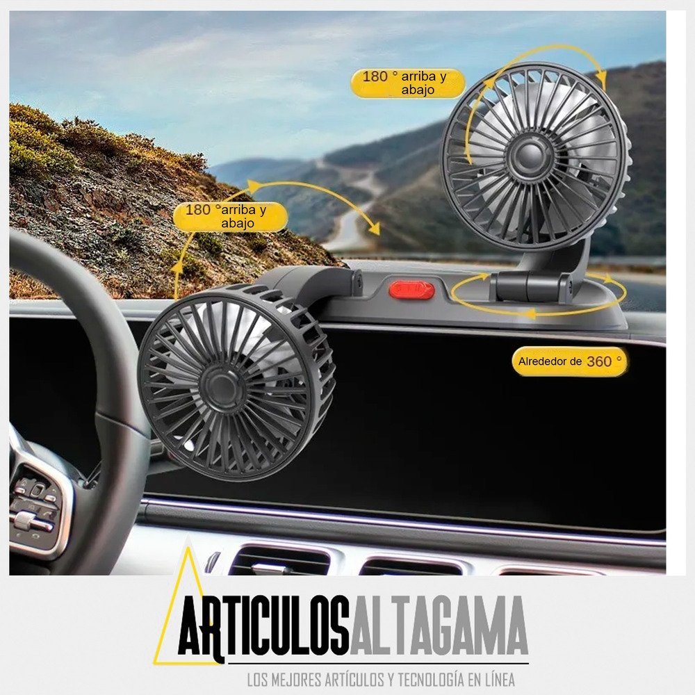 Ventilador Para Carro Doble Cabezal Ajustable De 360 Con 12v