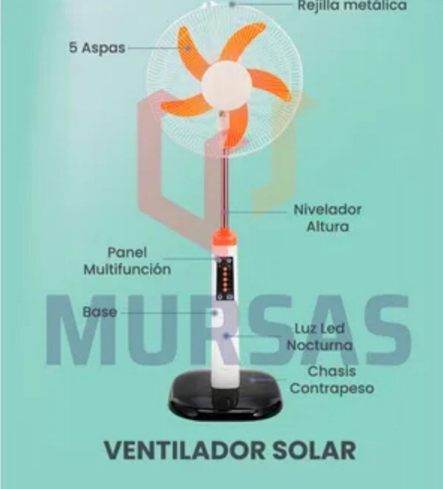 Este ventilador recargable de 16 pulgadas, equipado con un panel solar de 12V, representa la solución perfecta para la ventilación sostenible y portátil. Diseñado para ofrecer un rendimiento óptimo tanto en interiores como en exteriores, este ventilador es una elección ideal para áreas con acceso limitado a la electricidad convencional. Con un diseño robusto y eficiente, proporciona una brisa refrescante dondequiera que vayas.